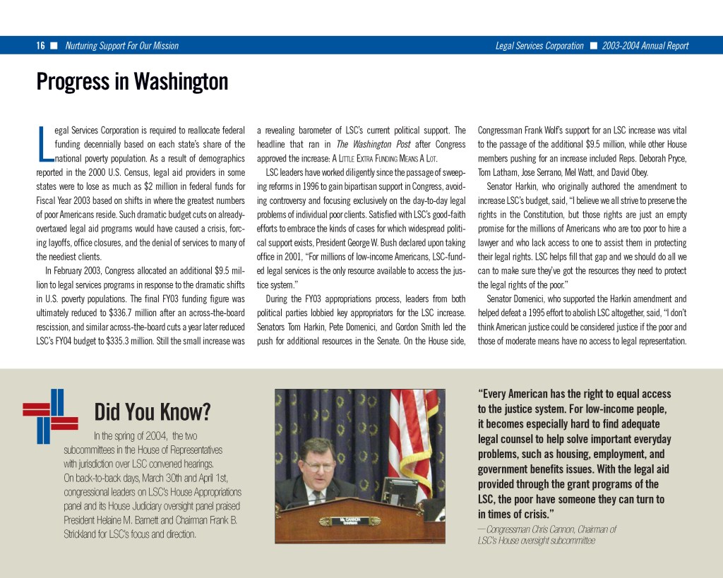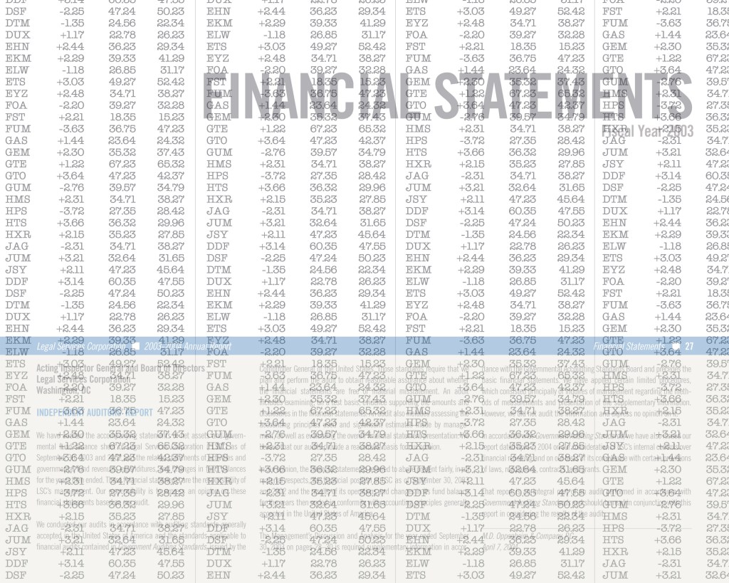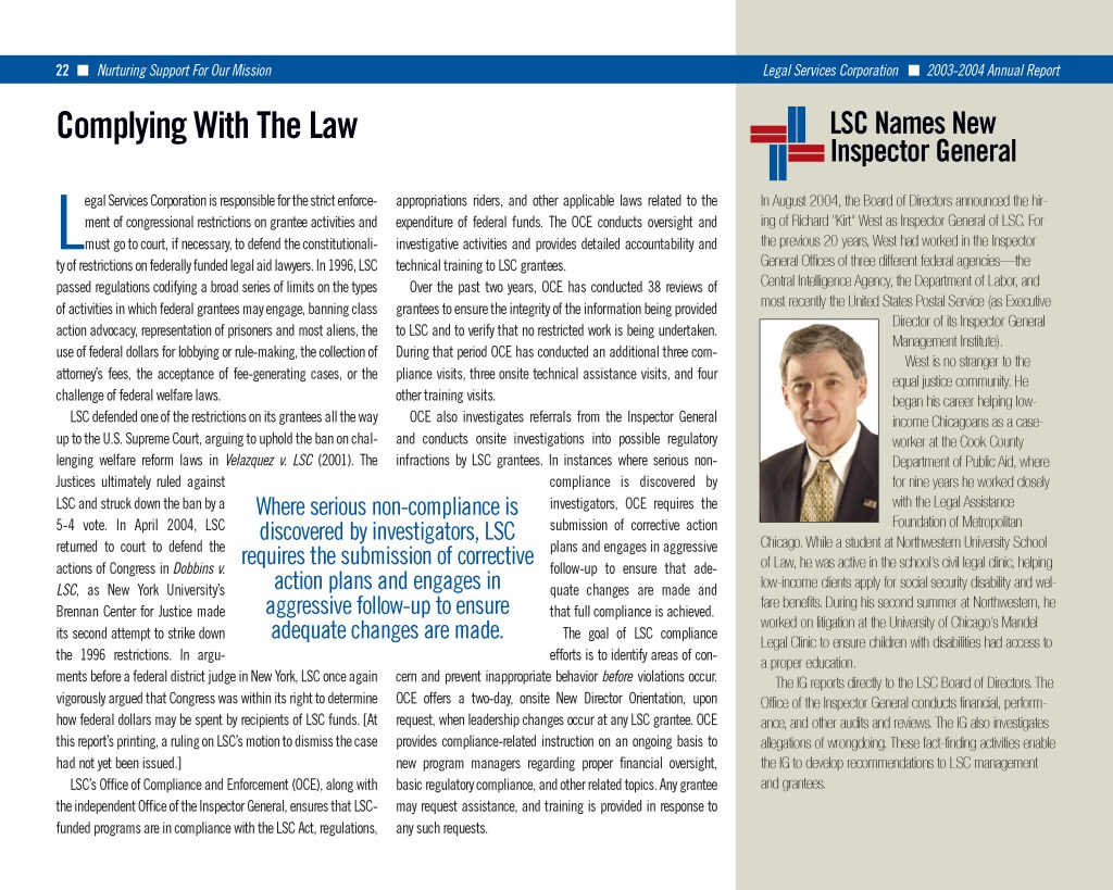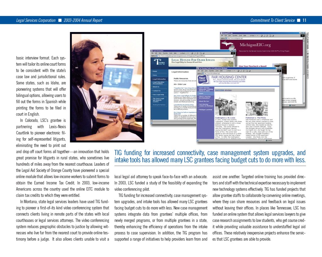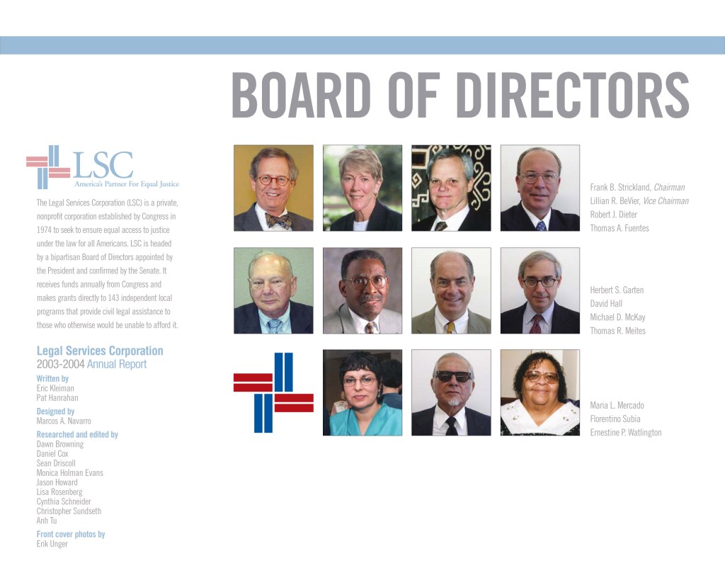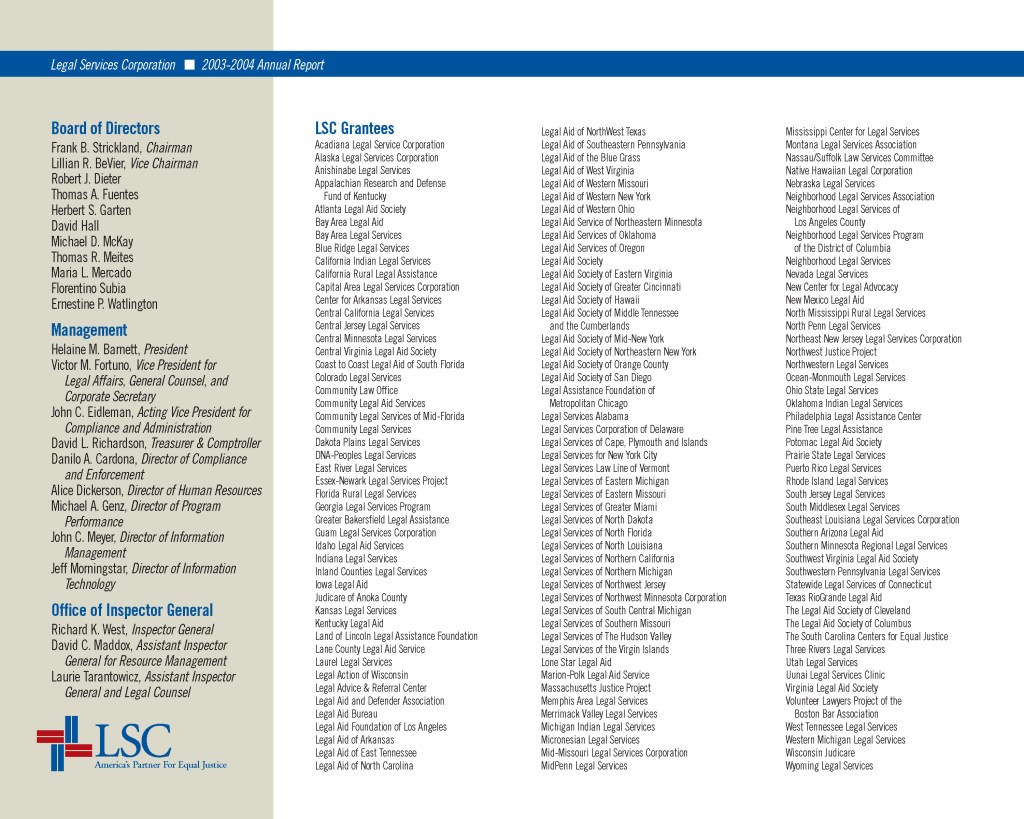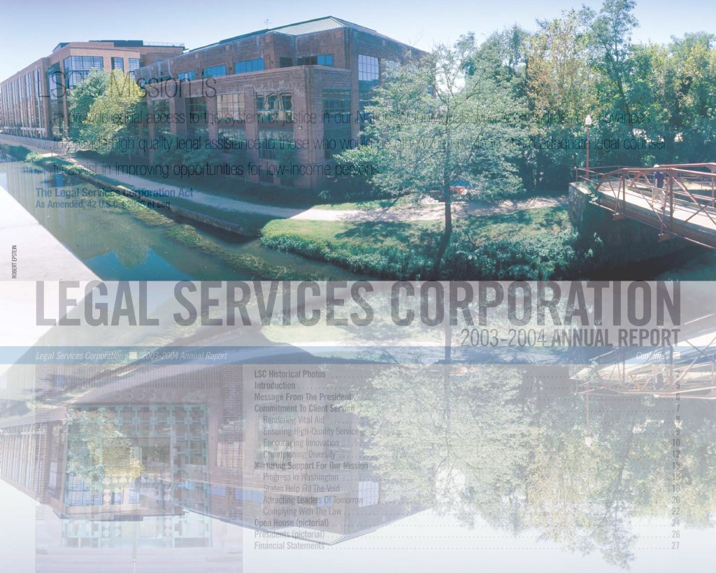 LSC Annual Report / 2003-04 Cover – LSC Grantees Feature Section Financials (segment) Vimeo YouTube Instagram Flickr Thank you, cheers.