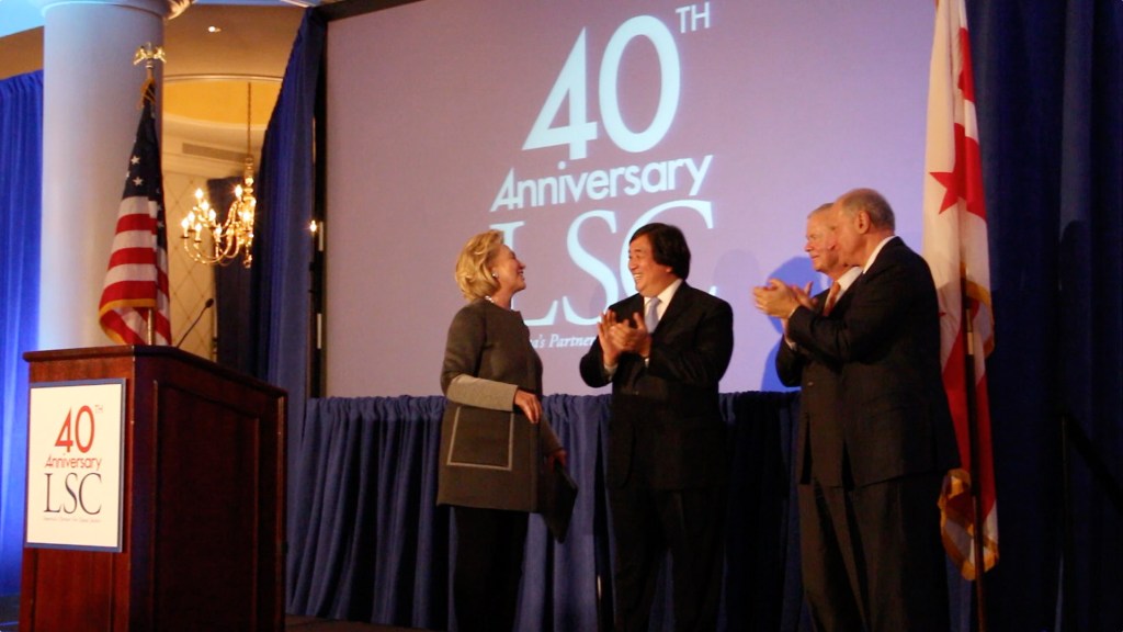 Secretary Hillary Rodham Clinton speaks at LSC’s 40th Anniversary event, September 2014.